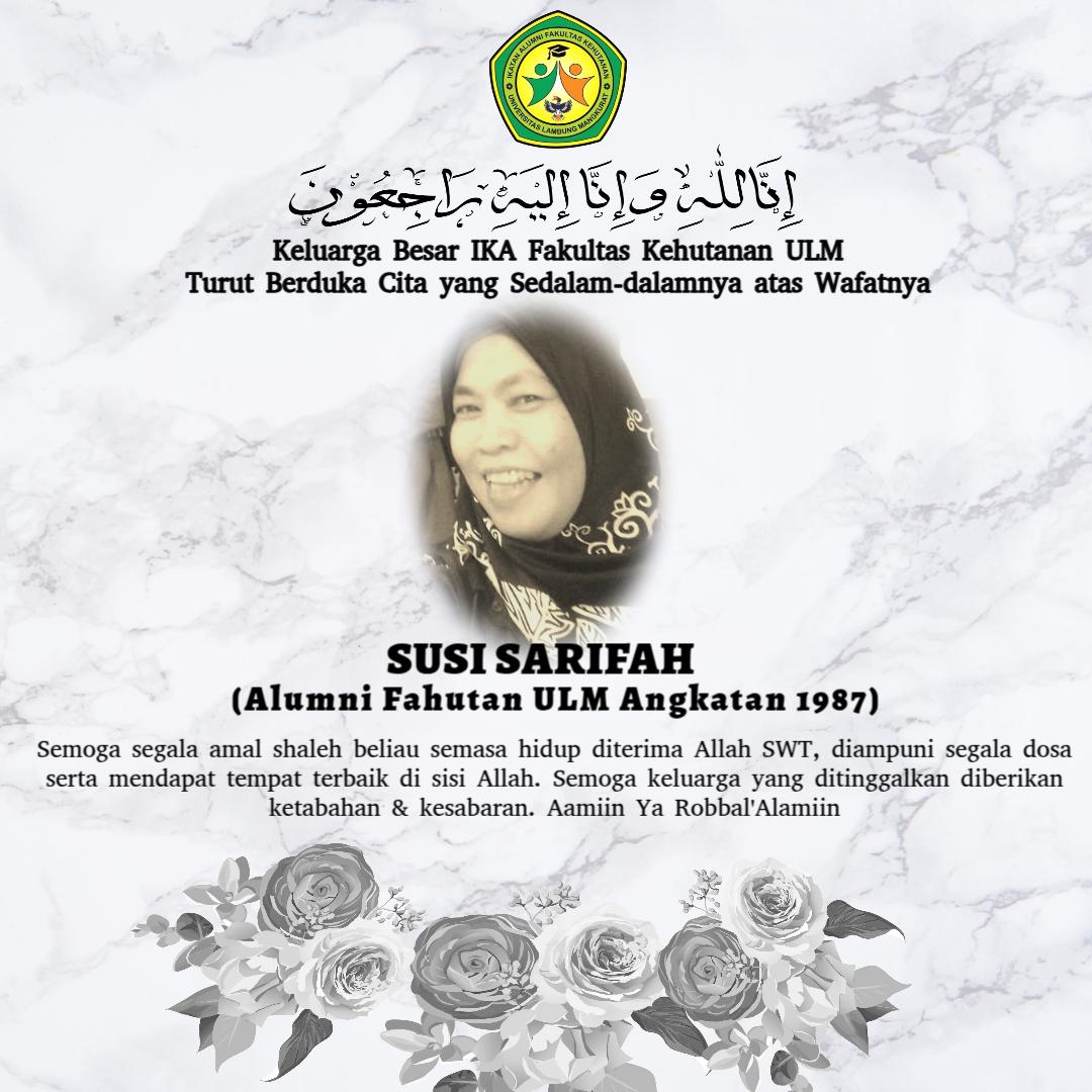 “Atas nama keluarga besar IKA Fahutan ULM, kami turut berbelasungkawa sedalam-dalamnya. Almarhumah Hj. Susi Sarifah dikenal sebagai pribadi yang ramah, aktif dalam silaturahmi, dan memiliki semangat kebersamaan yang tinggi. Semoga Allah SWT menerima segala amal ibadah beliau, mengampuni dosa-dosanya, serta menempatkannya di tempat terbaik di sisi-Nya. Kepada keluarga yang ditinggalkan, semoga diberikan ketabahan dan kesabaran.”