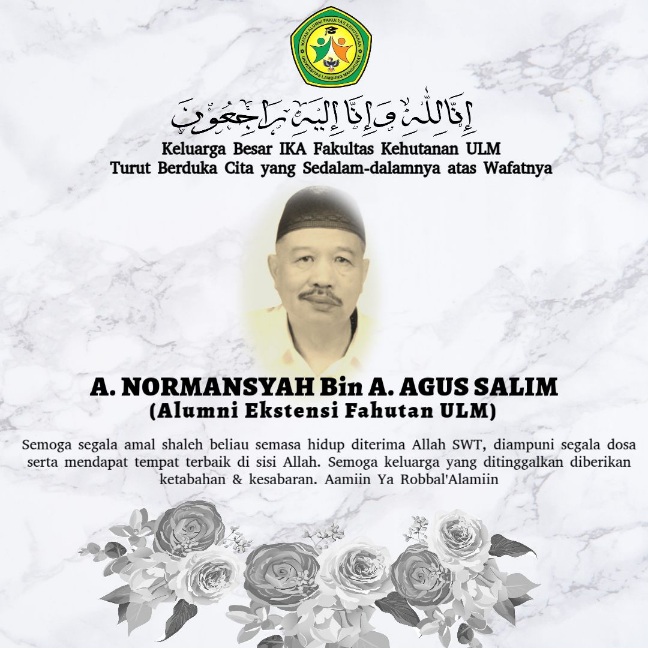 Keluarga Besar Ikatan Alumni (IKA) Fakultas Kehutanan Universitas Lambung Mangkurat (ULM) menyampaikan duka cita yang sedalam-dalamnya atas wafatnya: