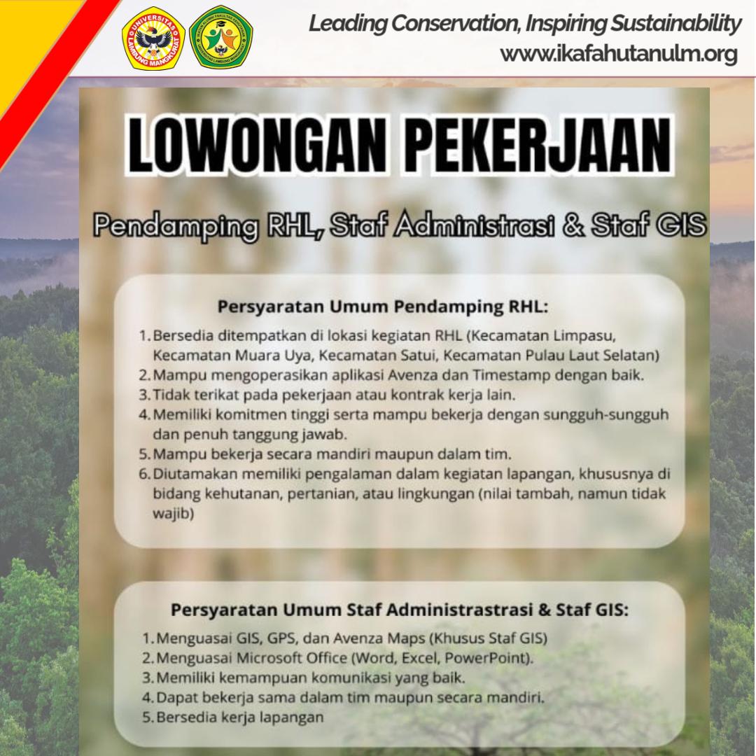 Untuk posisi Staf Administrasi dan Staf GIS, kualifikasi yang dibutuhkan antara lain: